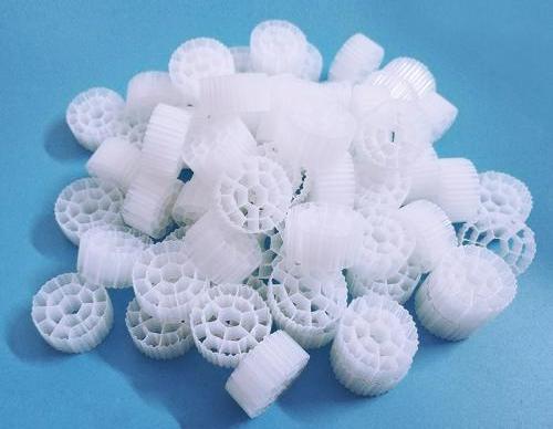 MBBR流化床填料是一種應用在mbbr工藝中的微生物載體,污水以一定的速度從下向上流動,使填料處于流動狀態(tài),因此也叫流化床填料。它采用科學配方,根據(jù)不同水質(zhì)需求,在高分子材料中融合不同種類有利于微生物快速成附著生長的微量元素,經(jīng)過特殊工藝改性、構造而成,具有比表面積大、親水性好、流動性好、生物活性高、易掛膜、處理效果好、使用壽命長等優(yōu)點。